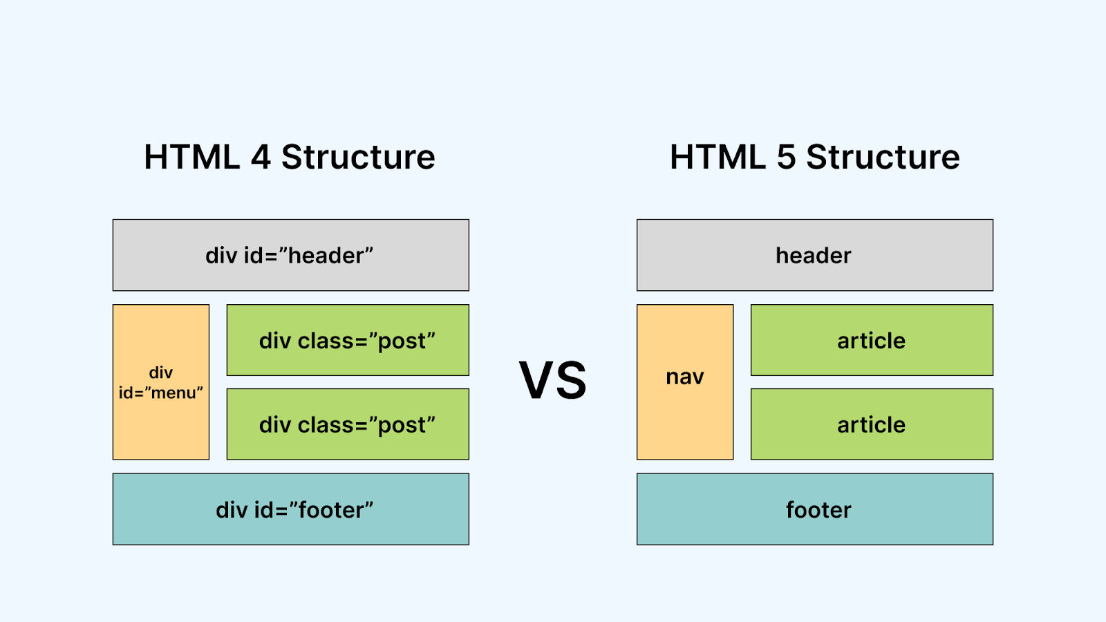 <!DOCTYPE html>. - Etiquetas semánticas que mejoran SEO y accesibilidad.
