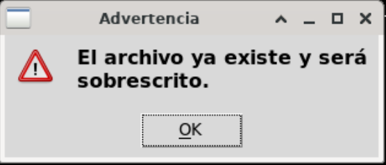 messagebox.showwarning('Advertencia', 'El archivo ya existe y será sobrescrito.')