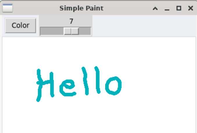 import tkinter as tkfrom tkinter import colorchooserclass SimplePaint(tk.Tk): def __init__(self): super().__init__();self.title("Simple Paint");self.geometry("800x600");self.current_color="#000000";self.brush_size=3 bar=tk.Frame(self,bg="#eceff4");bar.pack(side="top",fill="x") tk.Button(bar,text="Color",command=self.choose_color).pack(side="left",padx=5) tk.Scale(bar,from_=1,to=10,orient="horizontal",command=self.change_size).pack(side="left") self.canvas=tk.Canvas(self,bg="white",cursor="cross");self.canvas.pack(fill="both",expand=True) self.canvas.bind("<Button-1>",self.on_button_press);self.canvas.bind("<B1-Motion>",self.on_move) self.last_x=None;self.last_y=None def choose_color(self): c=colorchooser.askcolor(initialcolor=self.current_color)[1] if c:self.current_color=c def change_size(self,v): self.brush_size=int(v) def on_button_press(self,e): self.last_x=e.x;self.last_y=e.y def on_move(self,e): if self.last_x is not None: self.canvas.create_line(self.last_x,self.last_y,e.x,e.y,fill=self.current_color,width=self.brush_size,capstyle=tk.ROUND,smooth=True) self.last_x=e.x;self.last_y=e.ySimplePaint().mainloop()