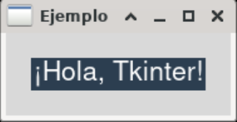 lbl = tk.Label(root, text="¡Hola, Tkinter!", font=("Helvetica", 16), fg="white", bg="#2c3e50")
