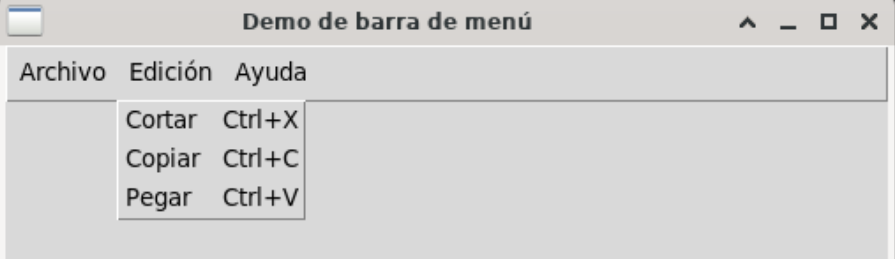 Menuy sus sub‑menús (Archivo, Edición, Ayuda). - Asociar funciones a cada ítem y usar separadores.